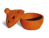 Il brucia resina Temple in terracotta è realizzato interamente a mano e cotto in un forno tradizionale indiano a terra, senza l’uso di energia elettrica. Ogni pezzo è unico e riflette l’artigianalità e la tradizione ceramica indiana.